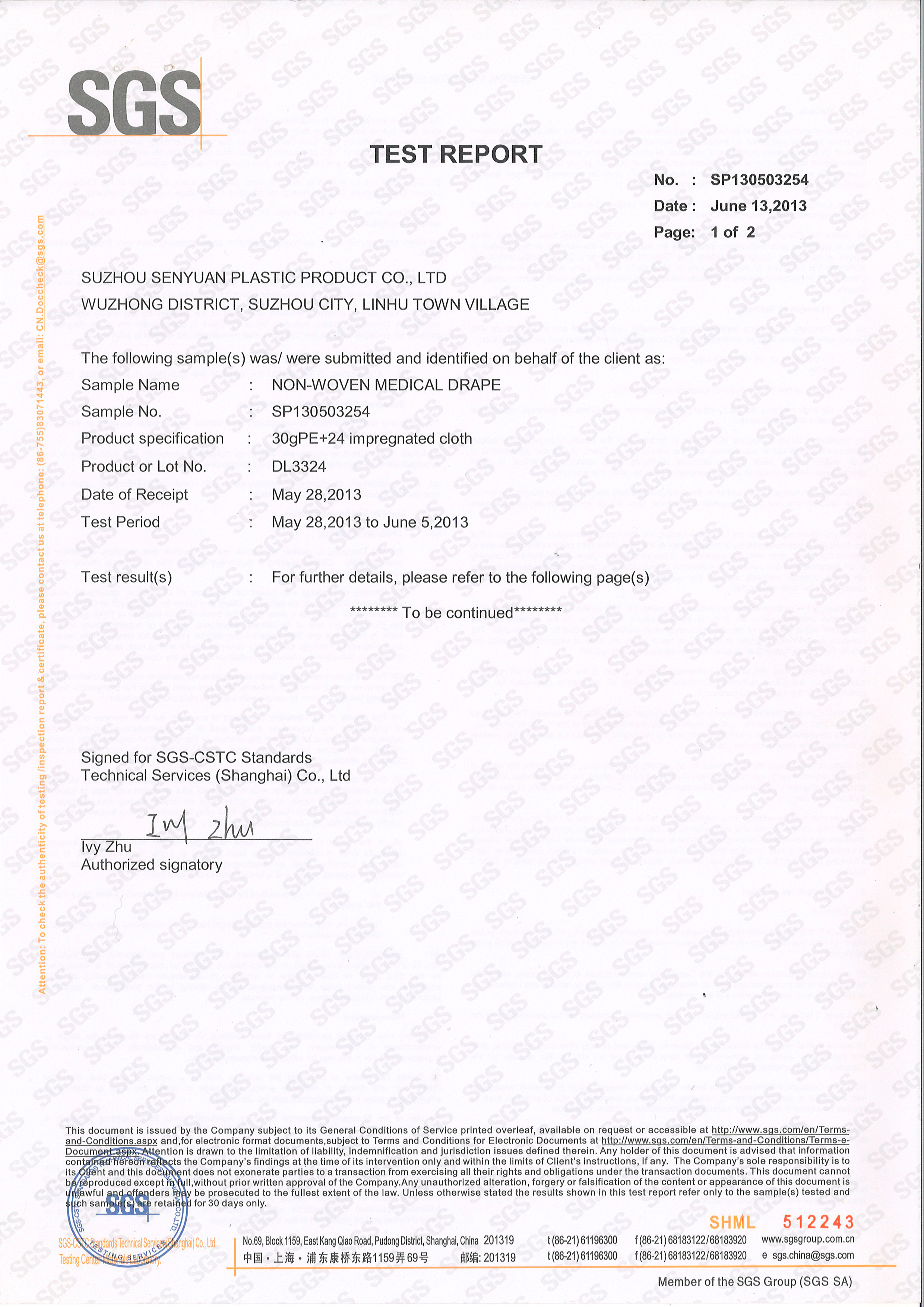 Rapporto di prova sul composito in tessuto impregnato SGS DL3324